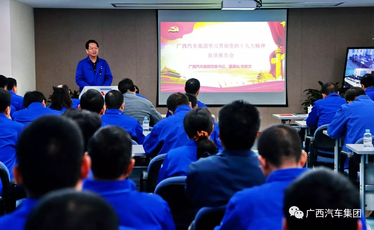為深入學(xué)習(xí)貫徹黨的十九大精神,?12月6日,廣西汽車集團(tuán)舉行學(xué)習(xí)貫徹黨的十九大精神宣講報(bào)告會(huì),廣西汽車集團(tuán)黨委書記、董事長韋宏文在會(huì)上作題為《新時(shí)代·新氣象·新作為》宣講報(bào)告。集團(tuán)公司黨委領(lǐng)導(dǎo)、各級(jí)黨組織書記、一級(jí)經(jīng)理、所屬企業(yè)負(fù)責(zé)人等一百多人現(xiàn)場聆聽了報(bào)告,山東、重慶、桂客等單位以視頻形式參加報(bào)告會(huì)。