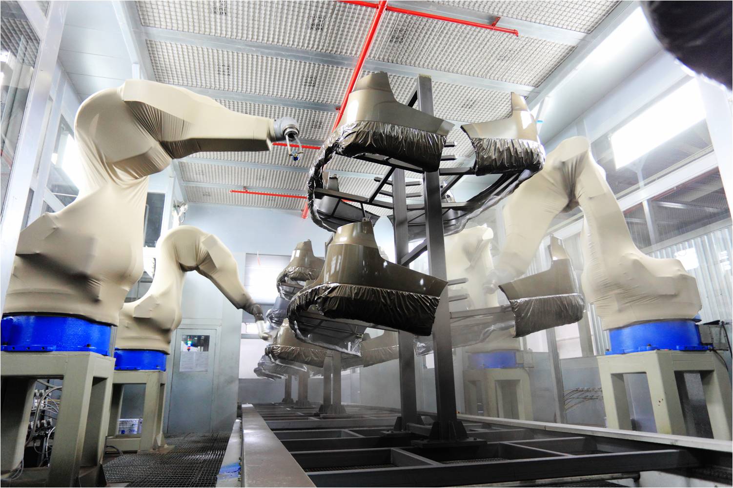 保險(xiǎn)杠自動(dòng)噴涂生產(chǎn)線:可并線噴涂包括乘用車前后保險(xiǎn)杠在內(nèi)的多種產(chǎn)品。