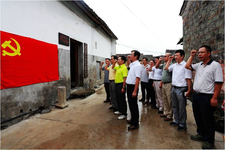 (圖為黨委中心組成員到柳城縣愛國教育基地——桂黔邊人民保衛(wèi)團(tuán)柳城武工隊活動舊址現(xiàn)場學(xué)習(xí))
