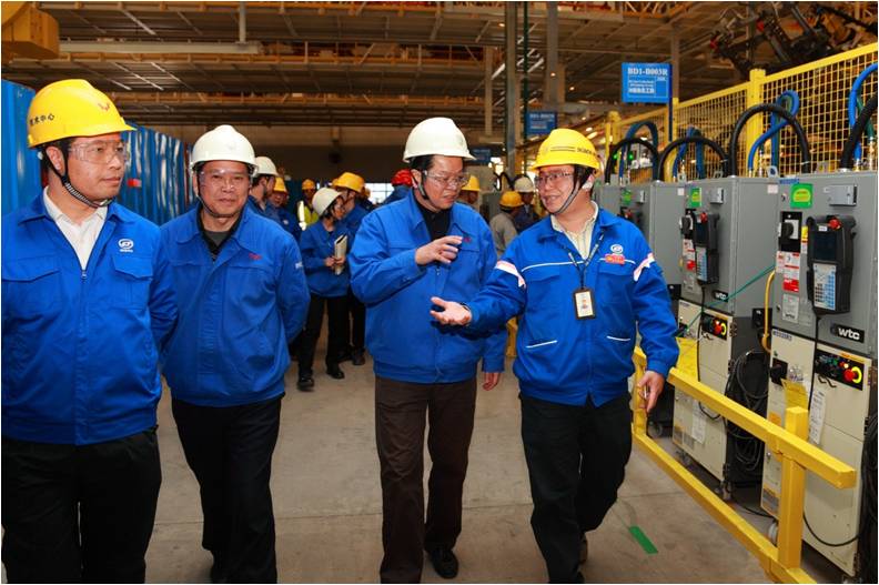 (圖為集團(tuán)董事長、黨委副書記韋宏文到客戶上汽通用五菱股份公司現(xiàn)場走訪)