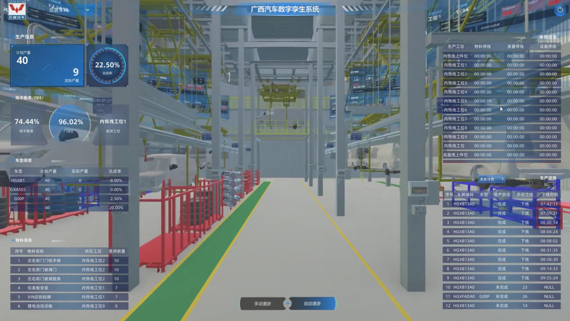 近幾年,廣西汽車集團加碼工業(yè)互聯(lián)網(wǎng),用“數(shù)”賦“智”,數(shù)字孿生項目就是其中一個重要的項目。目前,該項目已經(jīng)實現(xiàn)了一個工廠物理仿真應(yīng)用,新能源物流車焊裝、總裝2個車間物理仿真應(yīng)用,生產(chǎn)線370個以上數(shù)字孿生模型建模及設(shè)備信號接入,基于數(shù)字孿生技術(shù)的產(chǎn)品設(shè)計與仿真、協(xié)同工藝規(guī)劃、能效優(yōu)化分析、車間生產(chǎn)調(diào)度優(yōu)化、生產(chǎn)物流精準(zhǔn)配送等功能。