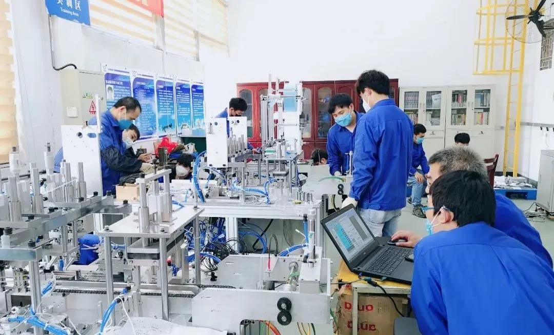口罩生產(chǎn)快,全靠機(jī)器帶,為了提高口罩產(chǎn)量,廣西汽車集團(tuán)也采購(gòu)了口罩機(jī),但恰逢春節(jié)和疫情疊加效應(yīng),口罩機(jī)所需的零部件供應(yīng)鏈非常不順暢,許多口罩機(jī)訂單交付延期,公司的訂單也在其中。時(shí)間就是生命,為搶抓時(shí)間,公司再次選擇自力更生,自制口罩機(jī)。?2月28日,公司裝備自制團(tuán)隊(duì)3小時(shí)集結(jié)14名技術(shù)專家,24小時(shí)出圖超300張并敲定設(shè)計(jì)方案。?綜合當(dāng)時(shí)疫情以及物流影響,在機(jī)加工能力、元器件供應(yīng)緊缺情況下,采購(gòu)中心和裝備團(tuán)隊(duì)搶時(shí)間、搶進(jìn)度、搶資源,充分發(fā)揮自主加工優(yōu)勢(shì),完成180多個(gè)關(guān)鍵模塊零件加工,實(shí)現(xiàn)人停機(jī)不停24小時(shí)輪番作業(yè),自主加工率超過60%,為整線集成贏得時(shí)間和主動(dòng)權(quán)。3月8日零件全部到位后,僅用1天時(shí)間就完成整線組裝,立即進(jìn)入機(jī)械、電氣穿插調(diào)試。團(tuán)隊(duì)連軸運(yùn)轉(zhuǎn)96小時(shí),累計(jì)攻克平行送料、打片、鼻梁加強(qiáng)線斷料、裁剪、耳帶焊接、三機(jī)聯(lián)動(dòng)等技術(shù)難題。3月12日,自主設(shè)計(jì)制造的首條自動(dòng)口罩線完成調(diào)試,第一批產(chǎn)品合格下線。