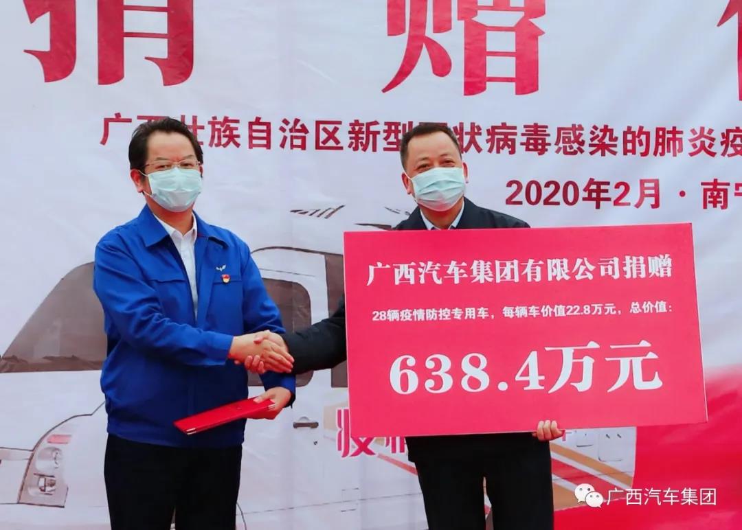 2月28日,廣西汽車集團(tuán)再次扛起國(guó)企擔(dān)當(dāng),進(jìn)行第三批疫情捐贈(zèng),向自治區(qū)新冠肺炎疫情防控指揮部捐贈(zèng)28輛疫情防控專用車,每輛車價(jià)值22.8萬(wàn)元,總價(jià)值638.4萬(wàn)元,捐贈(zèng)的疫情防控專用車將分別交付于廣西14個(gè)地級(jí)市使用。